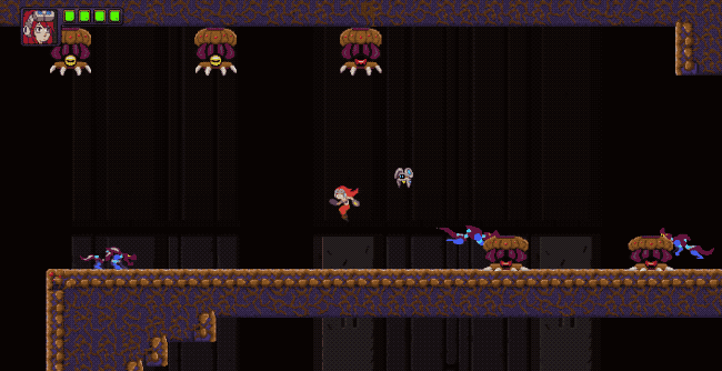 In Alvana you take control a mechanic aboard a scientific space ship that’s lost control of all it’s alien specimens and you must now use your trusty robot, Crea-t, to help you escape. Alvana is pretty agile, capable of running jumping and wall-jumping, but Crea-t has some abilities that really come in handy as you make your way through the ship. You can throw Crea-t at most types of aliens to kill them and you can also throw him at special grappling points and then use him as a grappling hook that handles much like the ninja ropes in Worms.