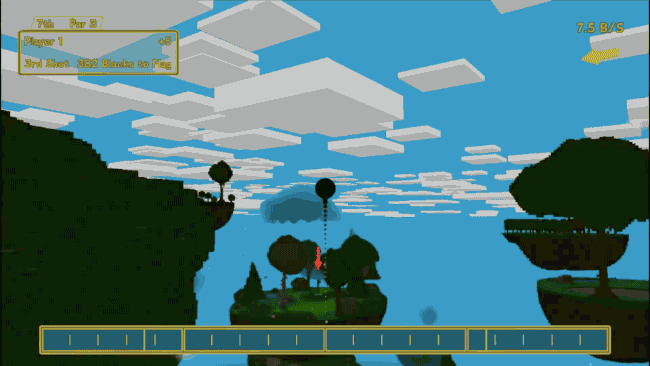 There are no clubs to worry about, you simply pick up the ball and throw it as accurately as possible. Different surfaces all have their own elasticity and friction, which makes for some challenging gameplay, especially when you factor in the voxel based nature of the game – it’s very hard to get a ball to roll up a hill made of blocks!