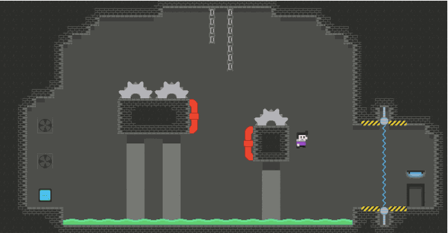 Blake Strongflank sees you avoiding toxic waste, hot pipes, and spinning blades to make it to the exit. Each room is a new puzzle that you will have to figure out by jumping around obstacles and using precision timing. If you do happen to hit a pipe or toxic water, your character will turn a different color and die. If you hit the spinning blades, you will die in a shower of pixel blood – basically, if you hit anything that’s not a wall or a platform, you’re dead meat!