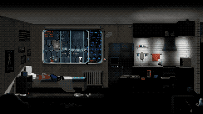 The current Kickstarter build of Born Punk takes place in Eevi’s apartment and gives a good taster of what to expect from the full game. The point and click interface is easy to get to grips with, the voice acting is great and the pixel art animation is excellent, but what’s most impressive is how your actions can affect the narrative.