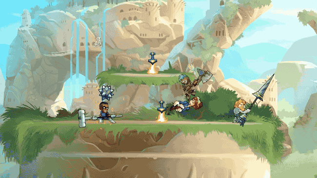 Brawlhalla is a slick Smash Bros-esque multiplayer arena brawler with beautiful hand drawn animation and fast paced battles between ninjas, aliens, Vikings, pirates, cowboys, werewolves, androids, knights and superheroes.