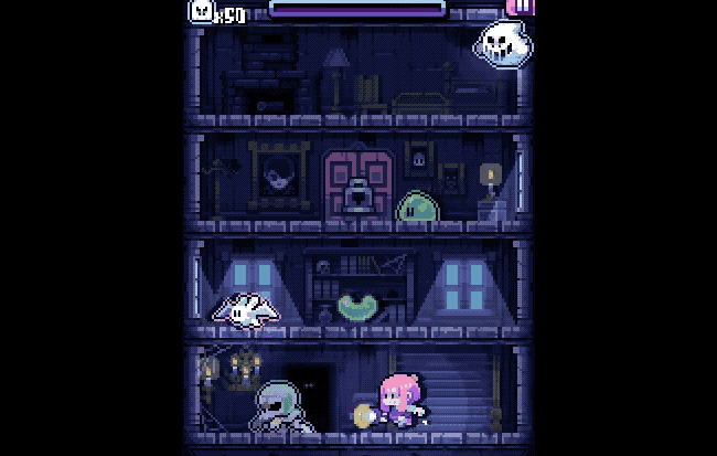 You’ll need quick reflexes as you battle your way through hordes of enemies and powerful bosses, but you will have some allies in the mansion. You’ll be able to draw on the services of companions, such as a ghostly bat and a cute little dog, to join in the fray, and there are even NPCs such as a peddler who collects other-worldly artefacts in exchange for useful rewards.