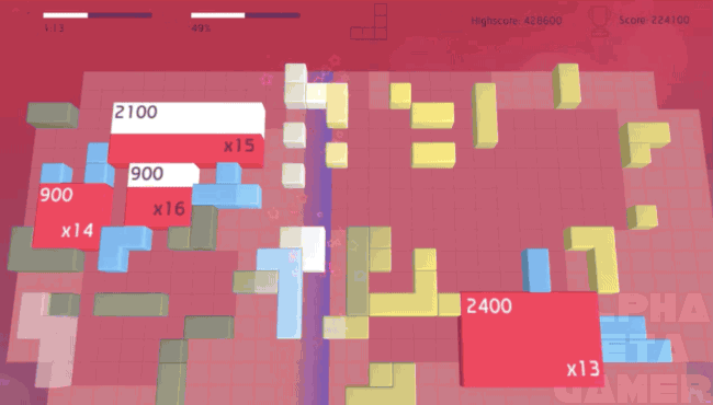You place pieces on a grid and those pieces are read as sounds by a beatline. As you tessellate the pieces to cover the playfield you both augment and progress through a piece of music. Your aim is to fill the grid and make quads, creating cool tunes and racing up a high score as you go.