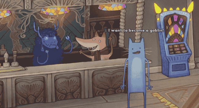 Chook and Sosig Hit the Club, a charming point and click game made for the Adventure Jam 2017, sees you playing a cat who has to prove he’s stealthy, funny and destructive enough to join a goblin role playing club!