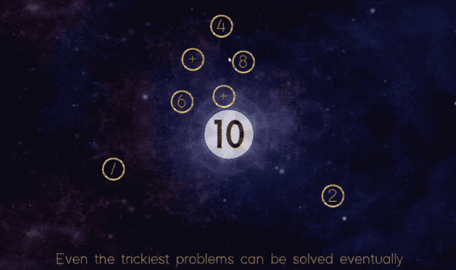 Created for the Global Game Jam 2019, Coming Home tasks you with combining the various numbers and operators on the screen to form the required number in the center of the screen. The number in the center of the screen is never very large and would be easy to get if you only had to use a few of the on-screen elements, but you have to use them all, which makes things a whole lot harder.