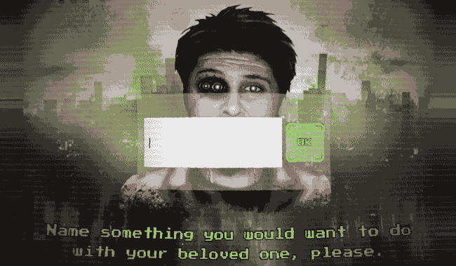 Cyber//zdvac is set in a future where robots are not only sentient, but crave the fellowship of another robot to complete them. You are one such robot, who has resorted to entering a robot dating TV show for your chance to find true love. The only issue is that you are a VERY old model, with a VERY limited vocabulary. So answering the questions to your hopeful suitors questions may be a little tricky… and a little hilarious.