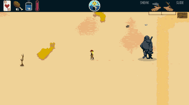 The procedurally generated steampunk Wild West setting of Duster is a very inhospitable place to visit. There are towns that can provide some respite from the hazardous conditions (and even more inhospitable bandits), but on the whole everything wants to kill you. The desert is full of bandits, lawmen, giant robots and wild animals, all of which are happy to send you to the great saloon in the sky. You can also get poisoned by snakes, sunburn, frostbite, food poisoning or you can just starve to death. Permadeath makes every encounter a high stakes fight for survival and even a simple little snake bite can cause your untimely demise if you’re not prepared for it.