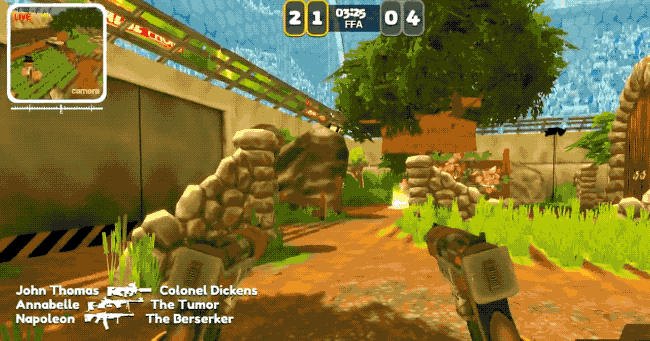 There are four character classes to choose from (Sniper, Assault, Machinegun and Shotgun), each with two primary and one secondary weapon. There will be a mixture of traditional game modes, such as Team Deathmatch and Search and Destroy, but there will also be some more lighthearted modes such as Infected and Prophunt. More content will be added after release and all DLC will be free of charge.