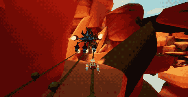 In Fast Food you control an onion who rides half an avocado along an intricate rollercoaster network as you attempt to stop a greedy leak from stealing all the water from your vegetable-filled world. The game is split into two large open worlds, with you given objectives in each one, often requiring you to shoot objects and figure out how to navigate from one area to another. The tracks are full of deadly hazards that you need to dodge, but your little onion is pretty nimble – able to boost, lean left and right, jump, shoot and switch between parallel tracks.