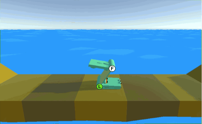 There are six levels in total and you’ll need some serious frog flopping skills to make it to the end. To move your body you simply have to press L and F to contract the corresponding joint. After a bit of practice you can muster up some semblance of co-ordination and get yourself moving in the right direction, but you’re never in complete control – especially when attempting to overcome an obstacle.