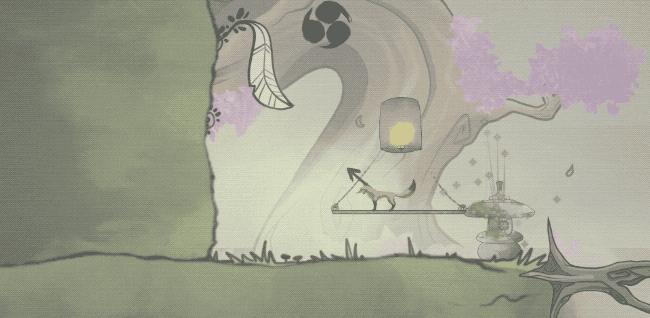 In Fushi you control a mythical fox who must make their way through the game’s beautiful hand drawn 2D game world to reclaim your soul. Initially you can run, jump, double jump and stick to large leaves which you can then aim your jump out of. As you progress though you unlock new powers, with you able to reverse time and fire ink at enemies and leaves, aiding your progress through the game world.