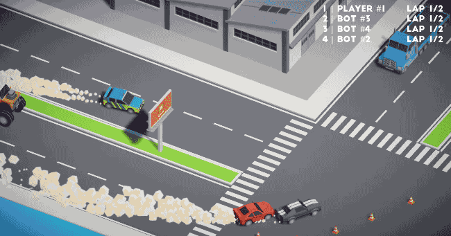 #HardCrash, a stylish and chaotic isometric racing game made for the Games Jam Kanobu 2017, has you power-sliding around tracks, leaving a trail of destruction in your wake!
