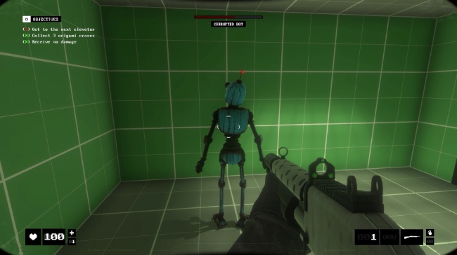 High Entropy will eventually feature a full story mode, but at the moment it comprises of a challenge mode made up of 15 self contained levels. In each level your aim is to make your way past the various locked doors, robots and security devices to the exit elevator. Each level also contains optional objectives, such as avoiding detection or collecting hidden Blade Runner style paper cranes, allowing you to unlock a secret ending if you 100% all the levels.