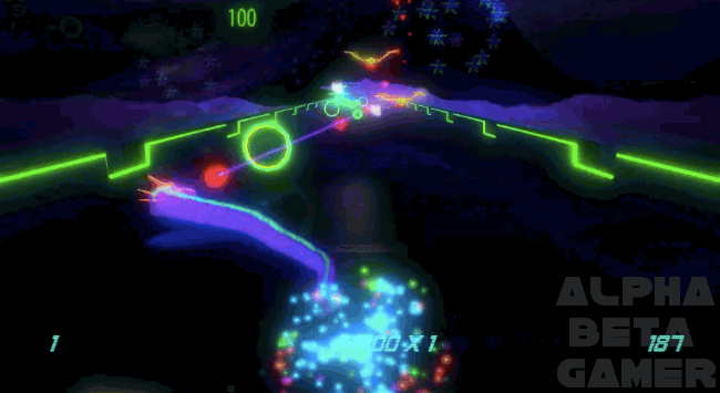 Gameplay is reminiscent of Space Harrier or Sin and Punishment, with you flying into the screen, controlling your target reticule and your character independently. It’s all down to reflexes as you duck, dive, swoop and shoot through Highlights – you really don’t have much time to think as glowing neon structures and phoenixes hurtle by at break neck speeds.