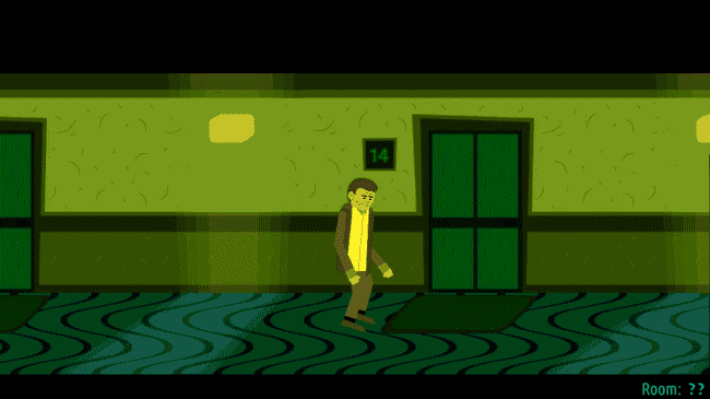 In Hotel Conifornia you play a businessman who is looking for your hotel room. The company you work for has booked you a room in a pretty bad area of the town, though this could not have been prevented. You are unsure what your room number is, and the hotel staff isn’t too helpful, so you need to search the hotel and find it yourself!