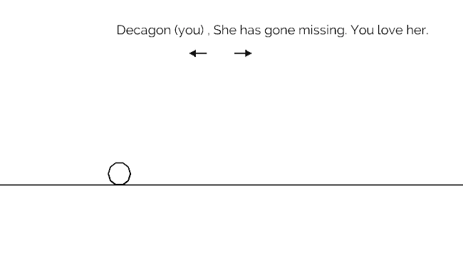 You start this game as a decagon with plenty of sides to give up for your love. You see, the other shape that you love has gone missing. It is up to you to find her and bring her back. The only issue is, you only have a limited number of sides. Each time you jump, you lose a vertex – a side of your shape – so you become a new shape. Once you get down to a triangle, you are unable to jump again or else you will cease to exist all together.