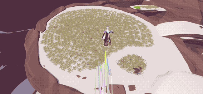 You can revive patches of grass and even bulbous plants that give out a chime when you hit them. The bulbous plants are usually found in groups and if you hit them in the correct order (listen to the background music for a hint on what order) then a larger plant will grow which you can harvest a sound from. As you explore there are lots of other little secrets to find and discover – most of it is optional, but it’s fun to explore, experiment and bring life back to the world.