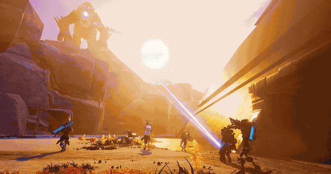 The robots are pretty badass, but the real star of the show in Insula: Bounty Royale is the game world that you’re doing battle in. The combat takes place on the beautiful but deadly floating island of Insula – a vibrant, living alien land with diverse ecosystems where the local wildlife can be far more deadly than the combatants you’re fighting against. Try not to get too distracted by the cascading waterfalls, sun-soaked beaches and breathtaking canyons or you’ll soon be dispatched by man-eating plants, killer rodents and rogue mechanicals!