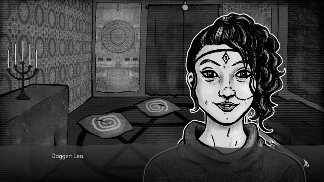 Knife Sisters is a visual novel adventure which revolves around a non-binary transperson called Leo who gets dragged into a secret society full of strange assignments, occult rituals and BDSM.