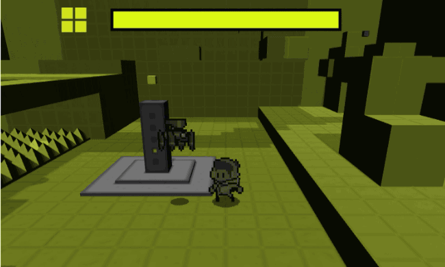 In Monolith you control a charming little 2D character in a 3D world. As you move around this world, you must collect tiny colored cubes to unlock new versions of the room you are in. Once you collect four of the same color cubes, you are able to use the totem pole in the middle of the room to change the environment. More platforms, enemies, and even spikes will appear. You will then need to explore the new room to find keys to get to the next.
