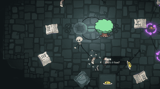 The only issue is – what items does it take to summon a skeleton? You know you need 8 different items, but not all of the items are in the room. The witch must have only made enough for her to create one of you. So you need to combine a few objects to get the desired ones and try them out in the main summoning circle. There are also smaller hexes that can alter objects slightly, giving you even more combinations to play around with.