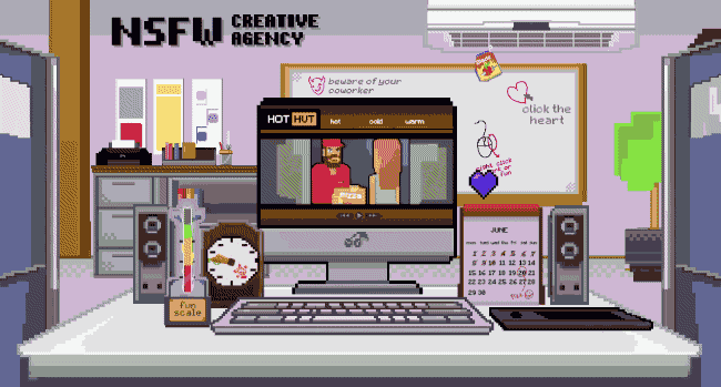 At any time in the game you can right click to toggle the adult entertainment site on your desktop, this will raise your fun levels and help you make it to the end of the day. However there are a lot of co-workers that walk past your desk, so listening out for their footsteps is critical. Make enough cash and you’ll be able to unlock new videos to funny pixel art adult entertainment parodies watch such as the pizza guy movie which requires you to frantically click the hearts that pop up on the screen.