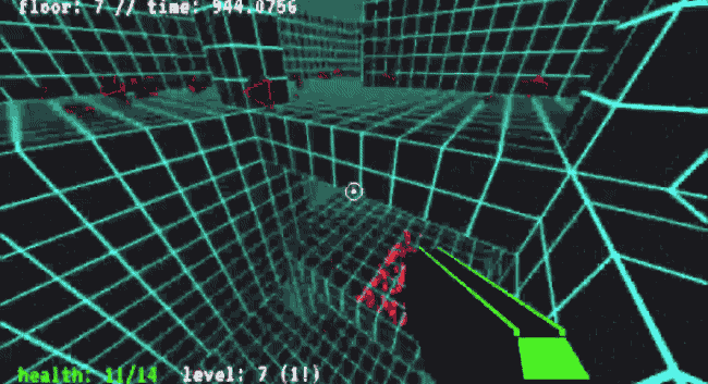 Created for in just five days for 7drl, nullpointer is an intense first person shooter with silky smooth controls and very satisfying combat as you navigate a procedurally generated warren of levels and blast masses of swarming enemies – all accompanied by an awesome electronic soundtrack. There are no new weapons to collect tand there are only two different types of enemy to blast, but you really don’t need any more than that. You can upgrade your health or damage at the end of each level as you level up, but it’s really all about fast reflexes and player skill.