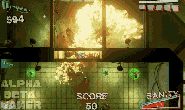 If any of the swarming spiders manage to attack you your sanity bar will decrease, empty this sanity bar and you’ll enter ‘INSANITY mode’ – giving you invulnerability, a speed boost and a set amount of enemies so kill within a short time limit. Kill enough enemies and you’ll gain a bit of sanity and carry on to kick some arachnid ass.