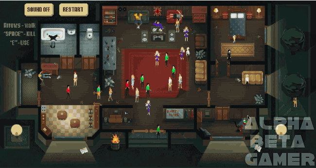 While all the other party-goers are drinking, dancing, vomiting and copulating, your black-clad pale-faced killer, stalks from room to room, taking them out one-by-one while avoiding detection. Get spotted in the act and the police will come and bust you. But if you murder someone and get far enough away from the scene of the crime, the police will simply arrest the nearest person to the body (much like real life).