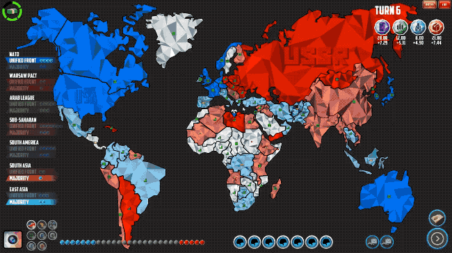 Precipice is a tense Cold War global strategy game for one to two players, where you use subterfuge to avoid open-conflict while fighting for your causes and trying to prevent nuclear annihilation.