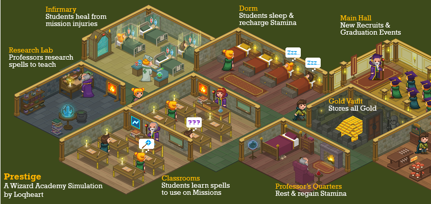 Prestige is a charming wizard academy simulation with a similar art style and design to the KairoSoft games (Game Dev Story, Hot Springs Story, etc.). You are the Headmaster of your own wizard academy. Research different spells, train your students to use them, then send them out to take part in classic RPG battles to gain more rewards.