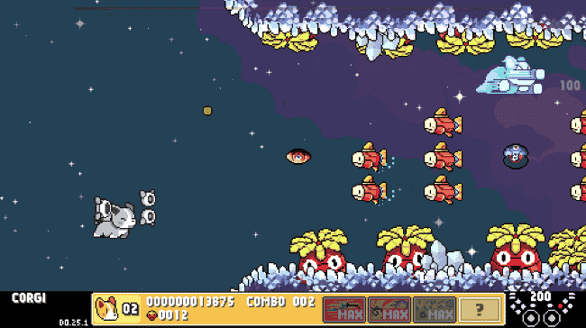 As with any good shoot ‘em up you have a few options when it comes to firepower. You can tap the fire button to bark at your enemies, hold the fire button to continually fire at your enemies, you can use special attacks and you can fire a ghost corgi in-front of you (a little like the pod in R-Type)