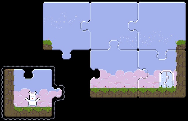 Puzezl is a very cleverly crafted pixel art puzzle platformer where you can use your telekinetic powers to rearrange the jigsaw based world around you.
