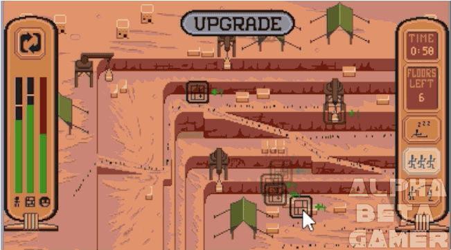 As a God, you must also manage your followers. You are able to let them slack off, make them work at a normal pace, or start beating them to make them faster. Beating them or not allowing resting times can cause their happiness to drain, thus resulting in a revolt. You must balance your resources and the happiness of your people, all while building floor after floor of a cool looking pyramid.