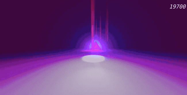 In Race the Odds you start off controlling a white disk, speeding through a colorful neon world. As you move through this space, you can drift left and right, making your way through blue triangles that appear. This will speed you up further, forcing you to react faster to avoid giant lasers falling from the sky. Soon, there are also vast expanses of lava – which you can jump above or speed above depending on how fast you are going!