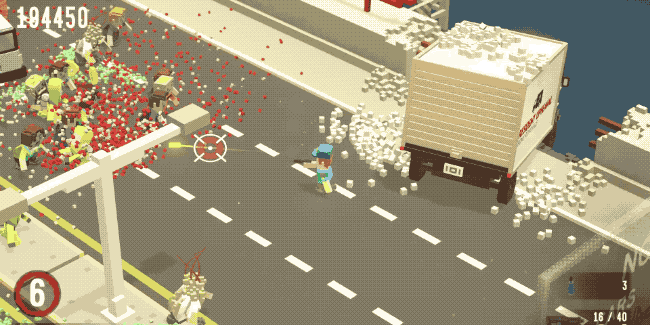 Rot:Purge offers an intense twin stick arcade combat full of the type of voxel based zombie blasting carnage that the dev describes nicely as “if Michael Bay made a Lego movie and it didn’t suck”. In the game you play a lone cop (co-op is coming in future builds) who has to survive waves of rampaging zombies in different locations across a city.