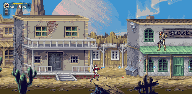 Saber Rider and the Star Sheriffs is a retro arcade action game based on the classic 80’s Anime series of the same name that blends Contra-esque on-foot run and gun combat, R-Type inspired side-scrolling shooting and giant mech combat.