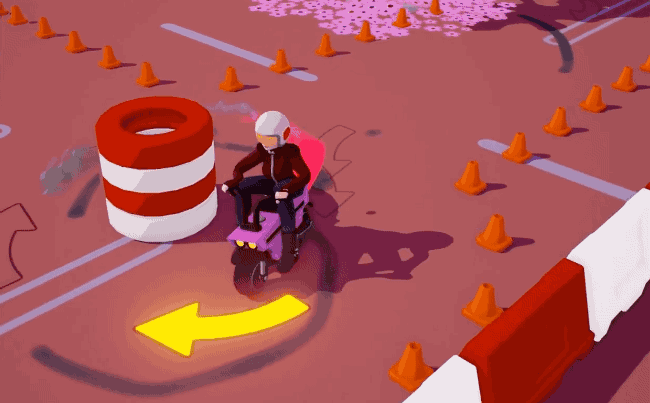 Scoot Scoot tasks you with racing around its charming little track on an adorable little motorbike, avoiding cones, speeding through speed-strips, doing donuts and weaving between poles as you attempt to get a fast time up on the leaderboard. Your first few attempts will most likely be a disaster with cones scattered across the track and you face down in the dirt, as the bike can take a little getting used to – but once you’ve got to grips with it, you’ll be whizzing around the track like a biking Ken Block.