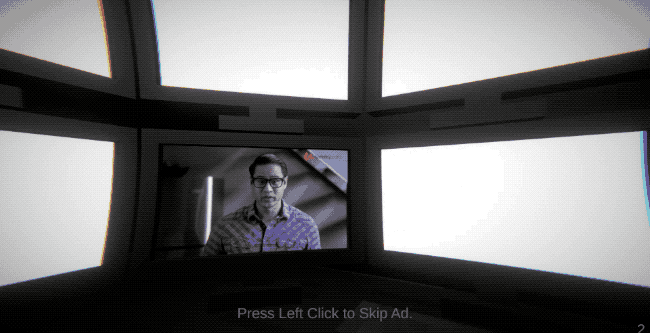 Screens. turns a well known YouTube pre-roll advertisement into a game, with you frantically trying to click the panel of screens in front of you to stop it from playing.
