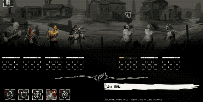 The combat system is particularly unique, with you planning your actions then drawing Tarot cards to see if they succeed or fail, often with side effects such as weapons jamming or increasing/decreasing one of your stats. The enemy doesn’t actually take a turn, they only attack you if the cards that you draw dictate it (which is quite often). Your entire team can die, except for the Inquisitor Rossano Mazzoni – you have to keep him alive.