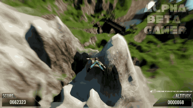 like our other recently featured wingsuit game – Wingsuitflyer – it’s an adrenaline fuelled extreme sports game about flying/falling down a mountain face first. Although in SkyDive instead of getting points by skimming near the ground, you get points by doing tricks in mid air while trying not to fail horribly and smash into the ground.