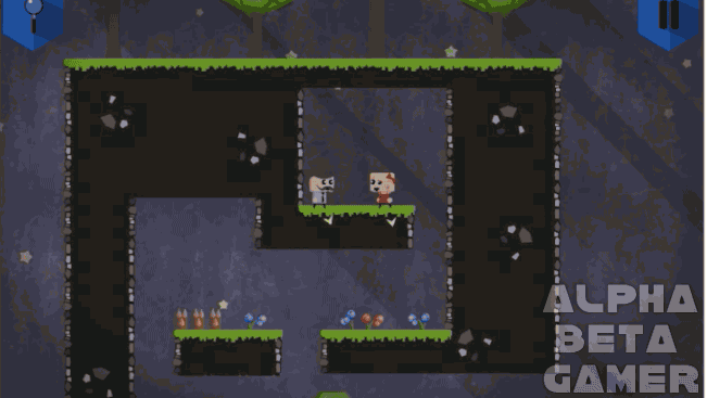 You control both characters (a boy and a girl) simultaneously, using the same controls but with each character moving in the opposite direction (so press ‘A’ and the boy will move left, but the girl will move right). The boy and the girl start at different points on a level, then must work out a way of uniting at the finish point.