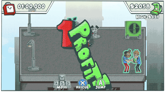 Even superheroes need to make money! In today’s society, the best way to make money is through sponsorship, but it does come at a price. Super Sellout is a platformer where you must rescue people on top of the roofs while managing sponsorships to earn more money!
