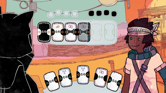 Signs of the Sojourner is a narrative driven deck-building card game where your cards help you communicate and form relationships as you travel through a near-future Earth-like world.