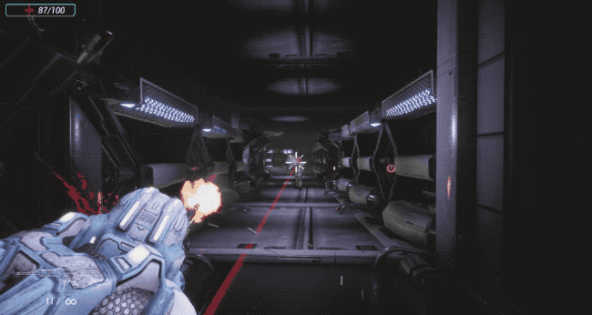 The current Pre-Alpha build of The Behind The Beyond features one large level which takes around 15 minutes to complete. It’s no run and gun shooter – if you rush into combat than you’ll be taken out pretty quickly. It’s much better to pick off enemies from a distance, especially as your gun is surprisingly accurate. Thankfully, your health does regenerate slowly and it’ll be topped up a bit once you reach checkpoints too.