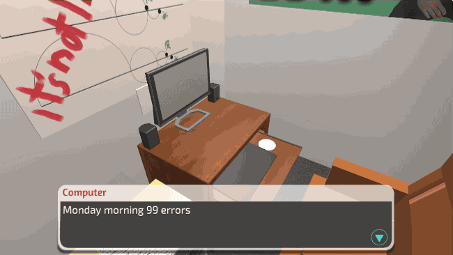 You spend the entire game in your apartment, crunching to get your game finished and interacting with objects around the house on the rare occasion you take a breather. A you progress, you discover more about your life and how it has gradually fallen apart, entirely due to your own actions. Your ex-girlfriends diary in particular is a grim read, describing how you’ve gradually changed from the man she loved into a fat, smelly ‘B.O. Stink’ that doesn’t leave the apartment.