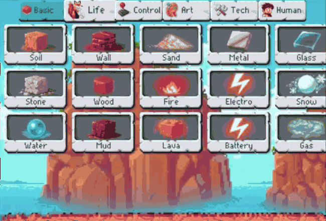 You have the power to create and destroy, to build forrests packed with life then burn them down. You can utilise a wide selection of resources, from water and soil, to zombies and dinosaurs, combining items to create new resources – from mud (water + sand) to complex electrical circuits.