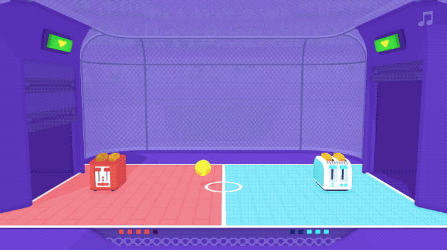 Your aim is to use your rudimentary toaster controls to knock the ball past your opponent in a 1v1 match that features a different gameplay modifiers for each round. There are lots of fun modifiers, such as tiny toasters, toastless matches or even 2D Pong battles.