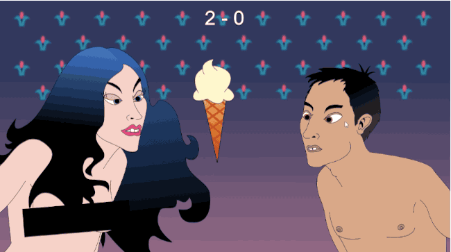 Once you have made your selection, it is time to play pong! The pong ball comes in the form of an ice cream cone – one bouncing around the screen. You must use your extremely long tongue to lick the ice cream cone, flicking it back and forth. Only licking the ice cream scoop will bounce it back so be sure to avoid the cone! It has quite simple gameplay and is only really fun in multiplayer, like most pong games, but is spiced up by silly premise and naughty visuals that are bound to raise a few laughs.
