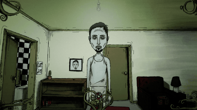 In T(rip) you follow the story of a young man who lives alone in an apartment. The game is told through eight different periods of his life, with the apartment getting more covered with graffiti and his style changing and clothes becoming more tattered as you progress. During each period of his life you need to search for items and combine them in different ways to achieve a specific (and often strange) task.